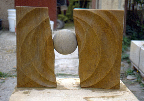 01 | ProfiliertePlatte mit Kugel Preis: 325,- € H = 46 cm, B = 62 cm, T = 15 cm |