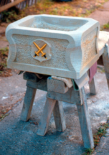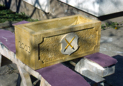 12 | Pflanztrog mit Wappenschild Preis:350,- € H = 30 cm, B = 50 cm, T = 50 cm |