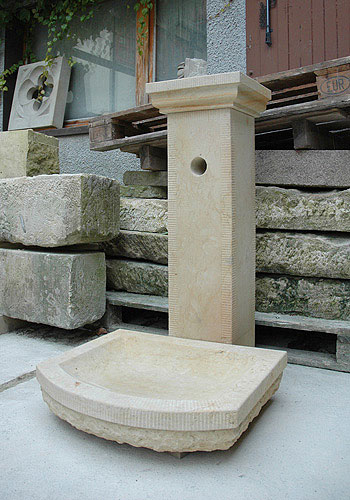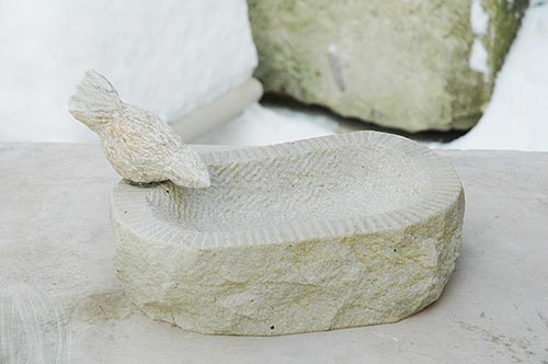 112 | Vogeltränke mit Vogel Reinhardtsdorfer Sandstein bossiert, gezahnt, scharriert mit Vogel Preis: 130 Euro |