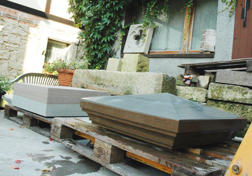 103 | Pfeilerabdeckung für Iserlohn Ruhrsandstein 74cm x 74cm x 25cm Rohblock und fertiges Werkstück |