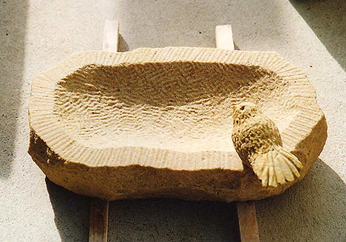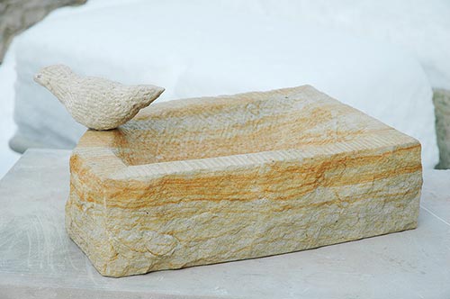113 | Vogeltränke mit Vogel Cottaer Sandstein bossiert, gezahnt, scharriert mit Vogel Preis: 85 Euro |