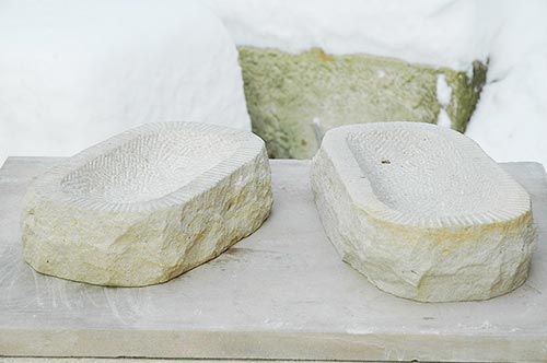114 | Vogeltränken Cottaer Sandstein bossiert, gezahnt, scharriert mit Vogel Preis: 55 Euro |