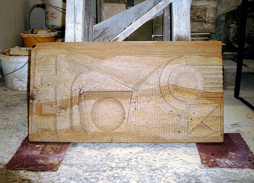 29 | Relief Wein mit Schrift Preis: 150,- € ca. 30 x 30 cm |