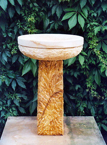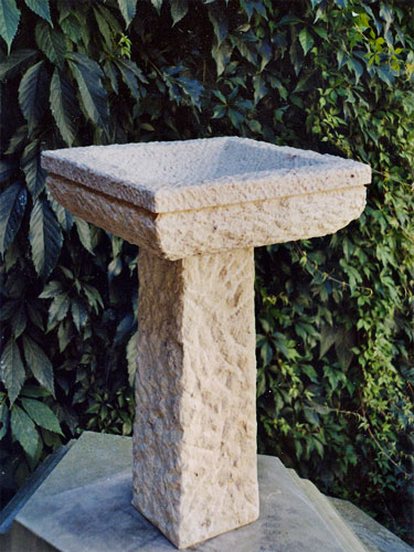 62 | Vogeltränke mit Fuß, gezahnt und gespitzt Preis: 205,- € Höhe = ca. 60 cm, B/T = ca. 35 cm Boderitzer-Kaitzer Sandstein |